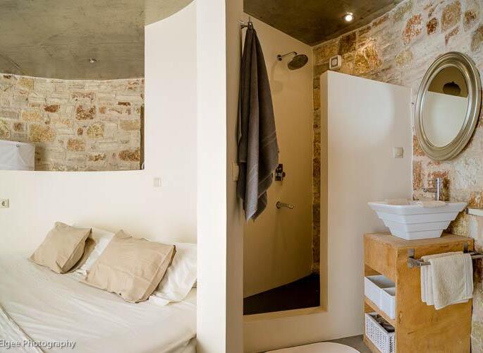 When you enter the gate at Tower Villas, you see a place where you feel safe and relaxed.In Thyme Tower you will enter the circular kitchen with its own dining area and to your right you see the cosy sitting area. Walking through you come to the spacious terrace with permanent shade, privacy and views. The pool is one level down and big enough to really swim and is surrounded by a sunny area with trees and a lawn .